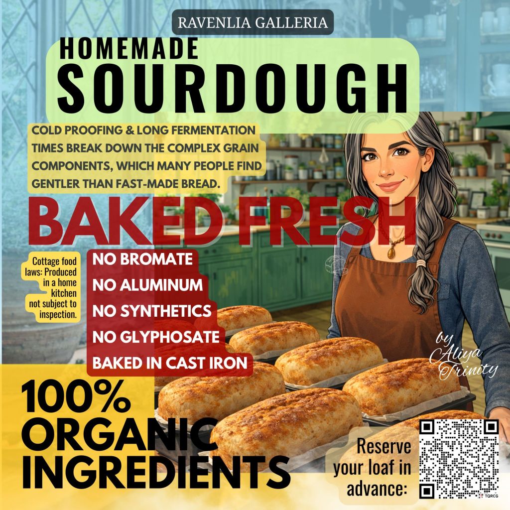 AVAILABLE NOW….. BAKED FRESH, fresh homemade sourdough available daily. Reserve your loaf in advance for guaranteed availability.